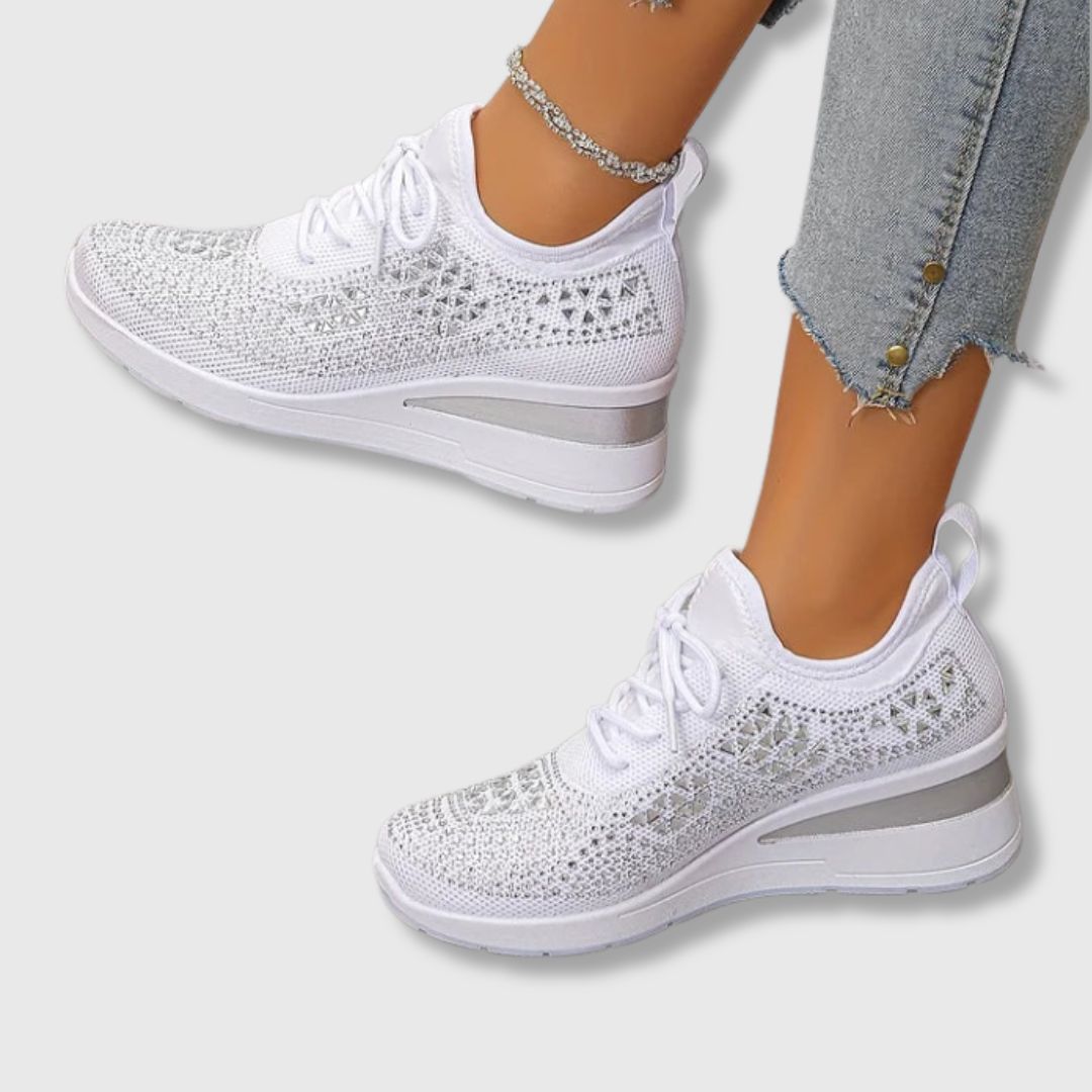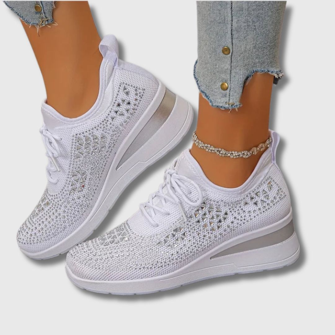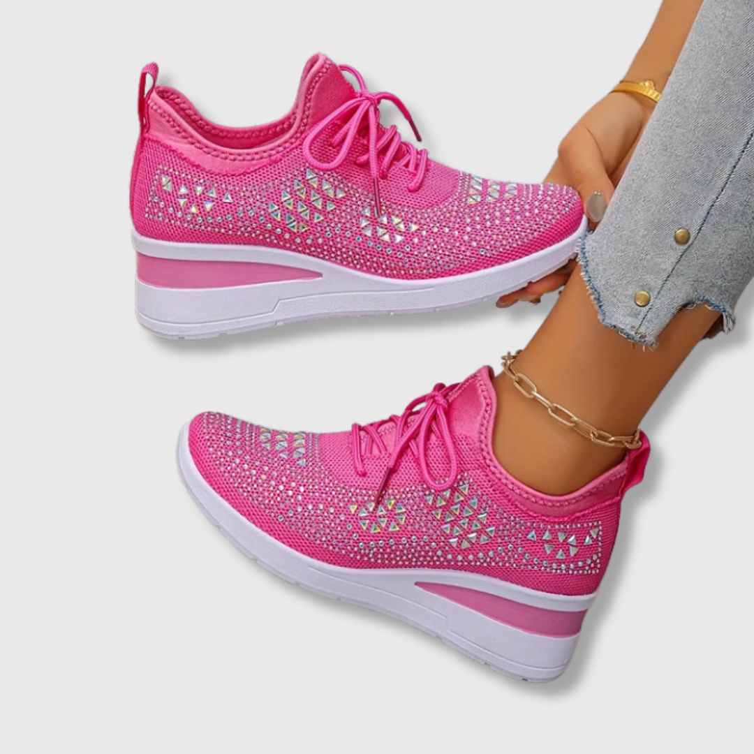 A Lucía sportcipő az ortopéd kényelmet modern eleganciával ötvözi. Légáteresztő felsőrésze és párnázott megtámasztása egész nap frissen és kényelmesen tartja a lábad, visszafogott fénye pedig a lezsertől a kifinomultabb összeállításokig minden szetthez nőies, letisztult ragyogást ad.