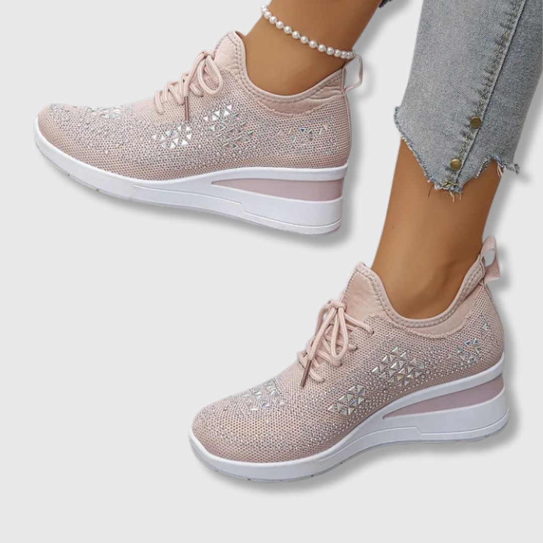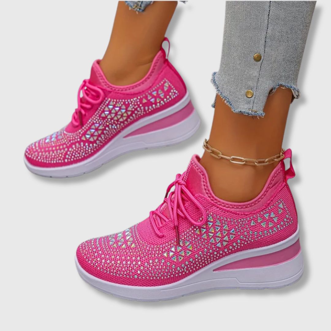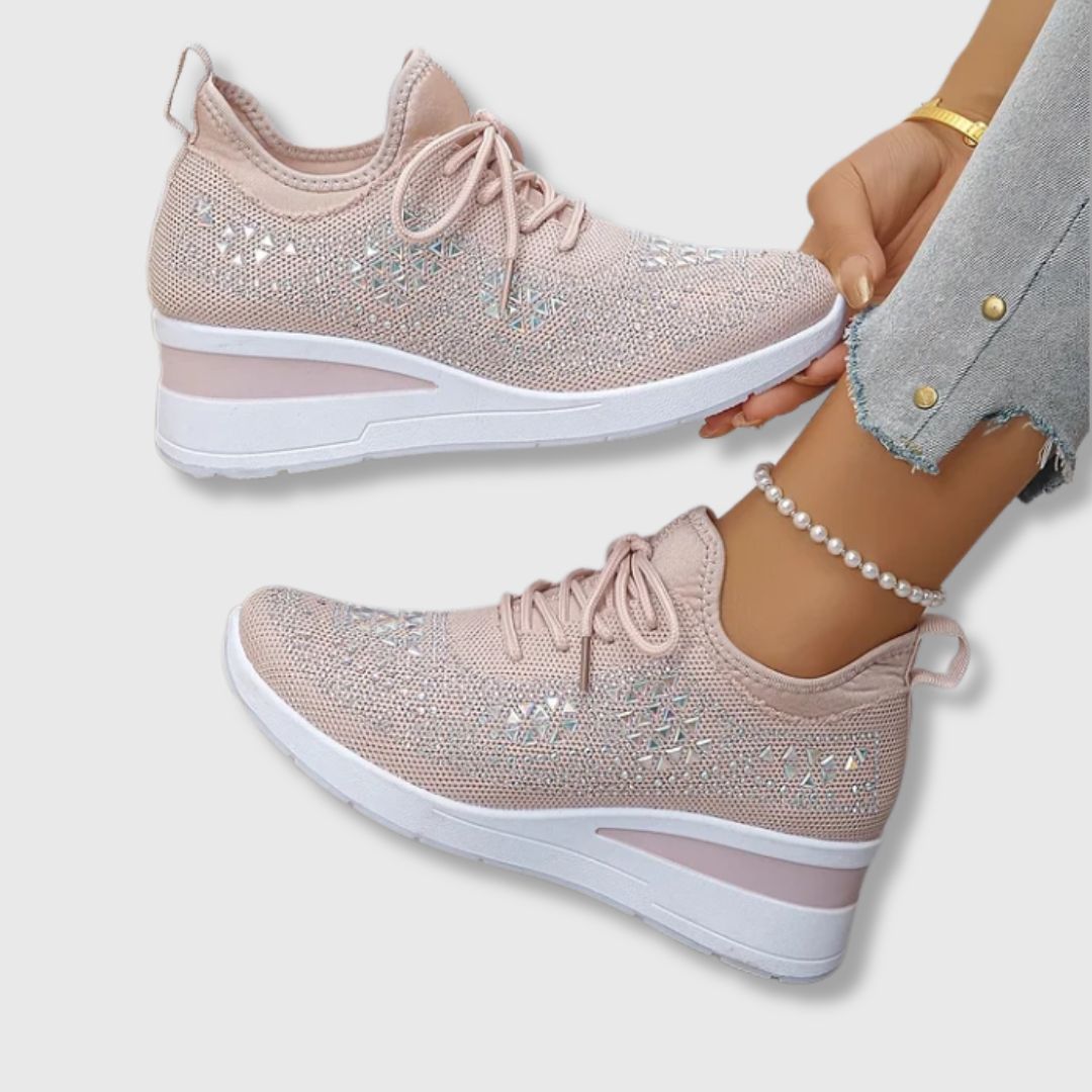 A Lucía sportcipő az ortopéd kényelmet modern eleganciával ötvözi. Légáteresztő felsőrésze és párnázott megtámasztása egész nap frissen és kényelmesen tartja a lábad, visszafogott fénye pedig a lezsertől a kifinomultabb összeállításokig minden szetthez nőies, letisztult ragyogást ad.